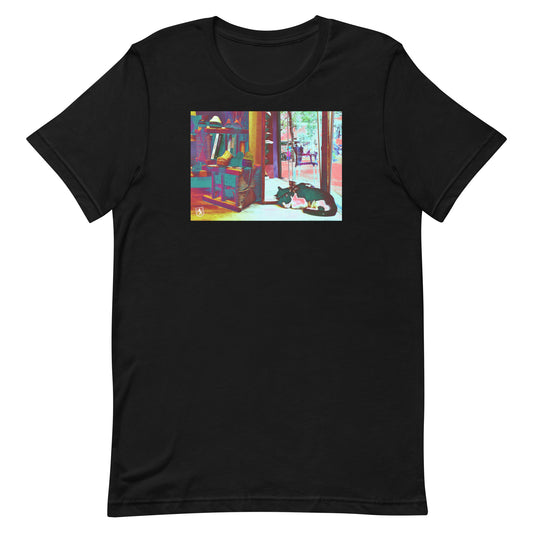 Cat, chair, shoes, window, sun T-shirt (unisex) Alien series